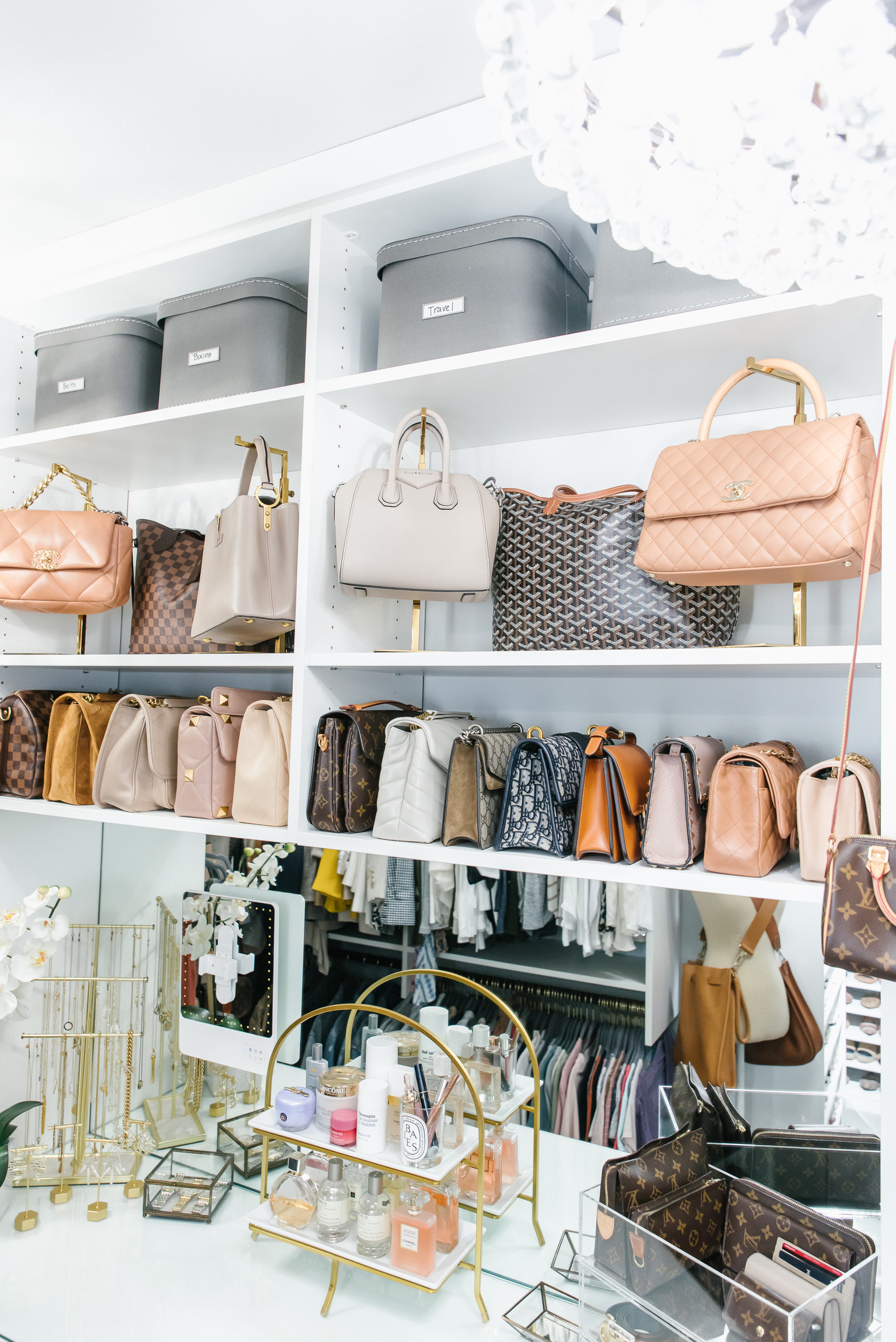 You know how much I love to organize my home but my favorite is definitely closet organization. I get asked daily about what I use to organize this space so I thought I’d put together a post to share it all. I love using acrylic pieces for a clean look but also so I can see all my items. I truly believe when it comes to shoes, handbags and accessories if you can’t see it you will forget you own it. With that said having some solid boxes are a must have to for other items needing to be stored in your closet. If you want more details make sure to check out my YouTube channel, I have several videos talking about my closet organization.