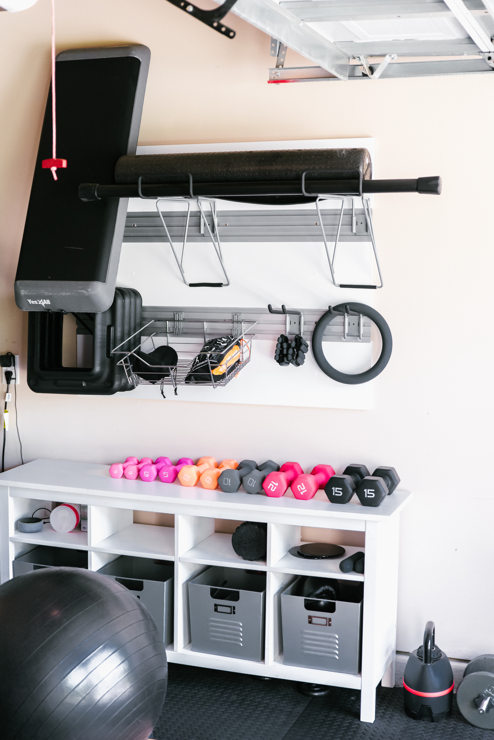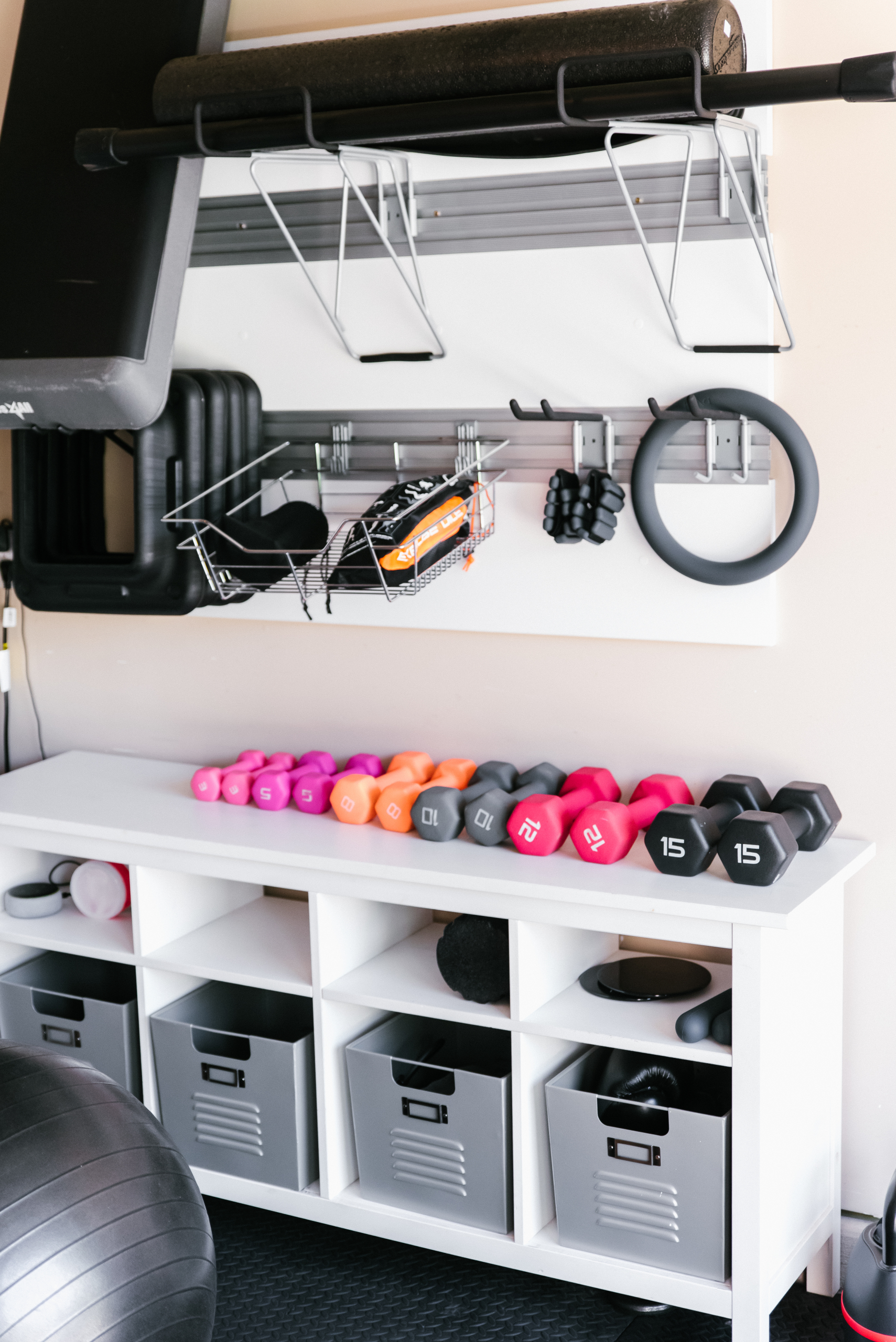 It took me a little while to come up with what works for me as far as organizing my home gym. I recommend setting up how you think you will like it but being open to changing things up as you start to workout in the space. I changed my gym organization a few times before I came up with a solution that worked for me. I also encourage you to think outside of the box. Use a piece of furniture to elevate your space while organizing. I added a console table and it not only makes the space look a little nicer but it adds the perfect amount of organization. These bins were the perfect touch too. I will be moving soon and I am taking the entire setup with me and setting it up the same. I plan to extend my home gym too, so make sure to subscribe to the blog so you don’t miss the updates.