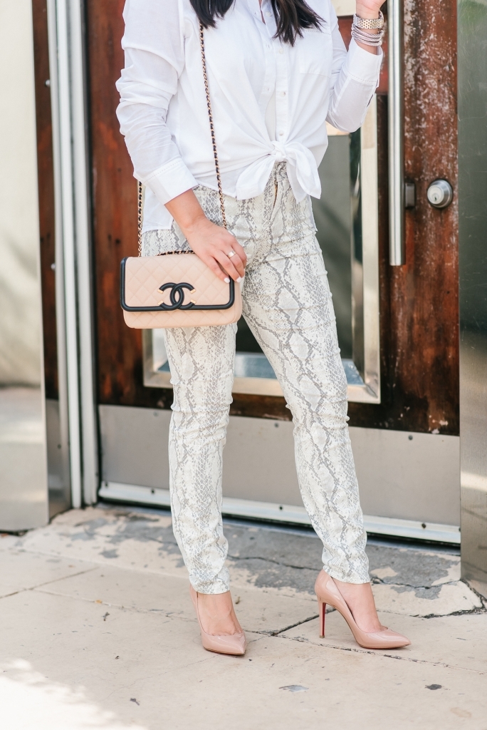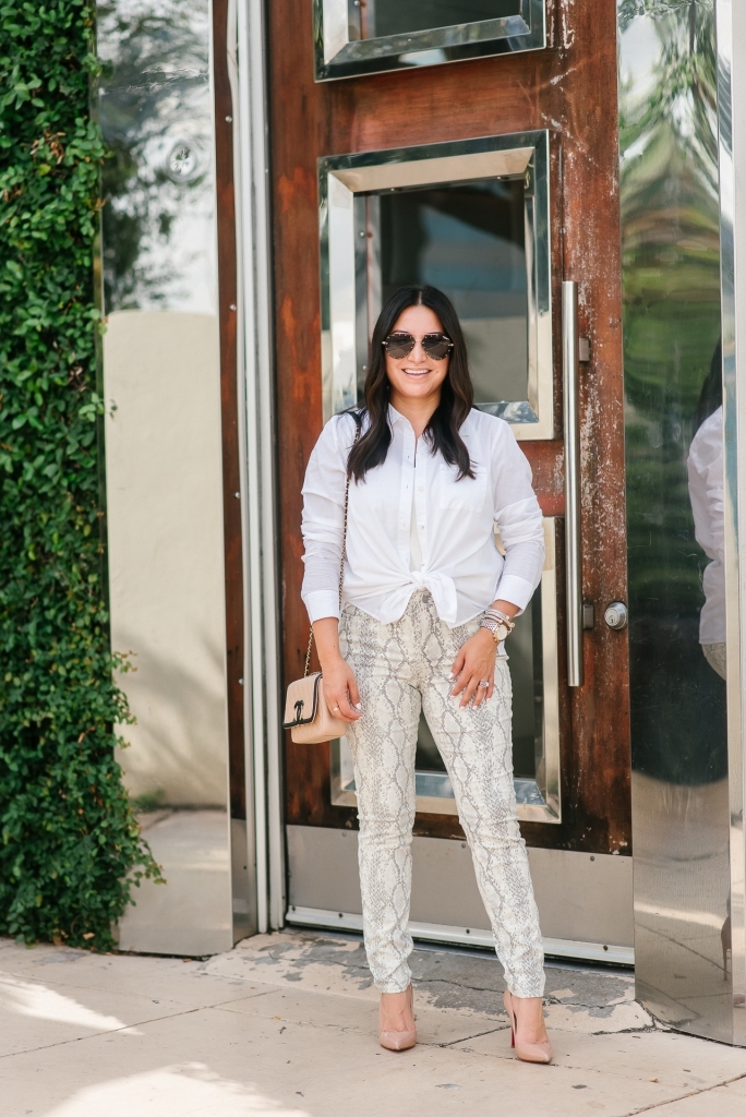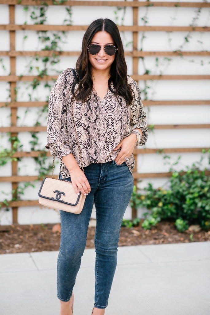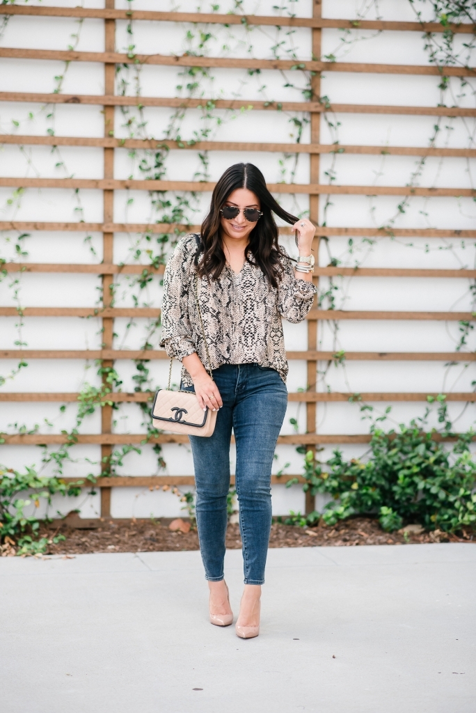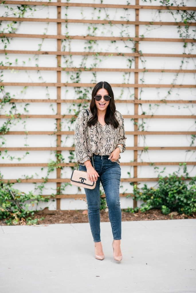 Did you get the memo, snake print is HOT this season. So, I thought it would be fun to show 2 different ways to style it. Where do you like your snake print…..top or bottom? I honestly was so certain that I was going to love it only on top but I am living for these snake print pants y’all. The fit on these jeans is so good and they come in petite..woohoo! I was so excited to partner with NYDJ and Nordstrom for today’s post. They have some online exclusive pieces available at Nordstrom now here. Nordstrom always has the best selection and with all their online exclusives from NYDJ you have got to check them out.