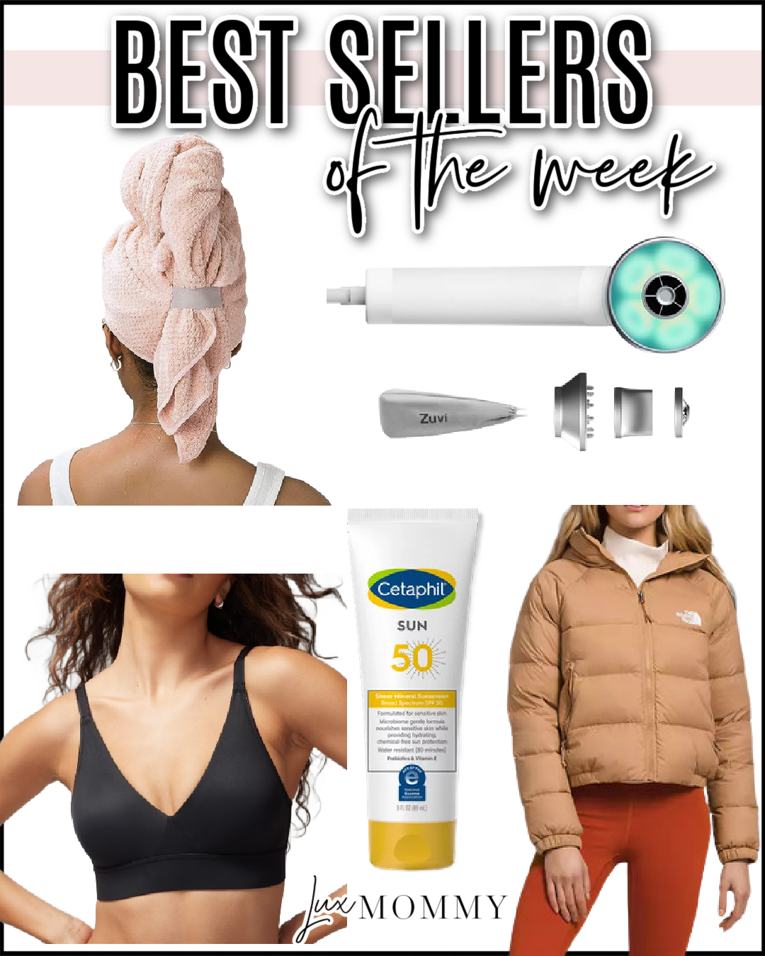 Houston fashion/lifestyle blogger LuxMommy shares best sellers of the week including the best hair towel, my current go to sunscreen, the perfect bralette, a must have lightweight puffer jacket and a great blow dryer! Use my code to save! xoxoAmanda no comments Leave A Comment Share