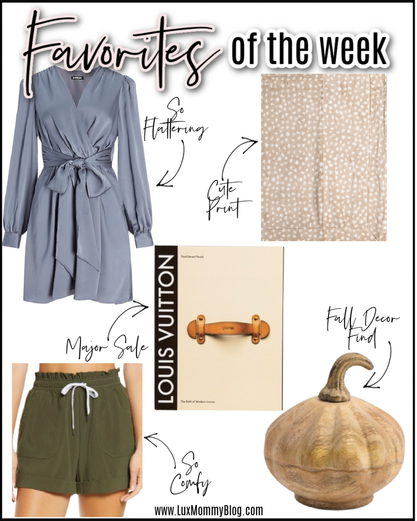 šFall is in the airā¦..well not yet, but itās hit my home and I am loving it! This wood pumpkin was such a good find for decorating my bedroom, see this blog post here. I also had to have this throw blanket, I love the print!! I also had to share that I found my favorite LOUIS VUITTON book on MAJOR SALE! I have been adding luxury books to my home over the last couple of years and this one is one of my favorites. Itās HUGE and I love the spine detail. This faux wrap dress is super flattering, if you have an upcoming wedding you need it and I really fell in love with these casual shorts. They are so comfortable. Shop all of this weekās favoritesšš¼!!