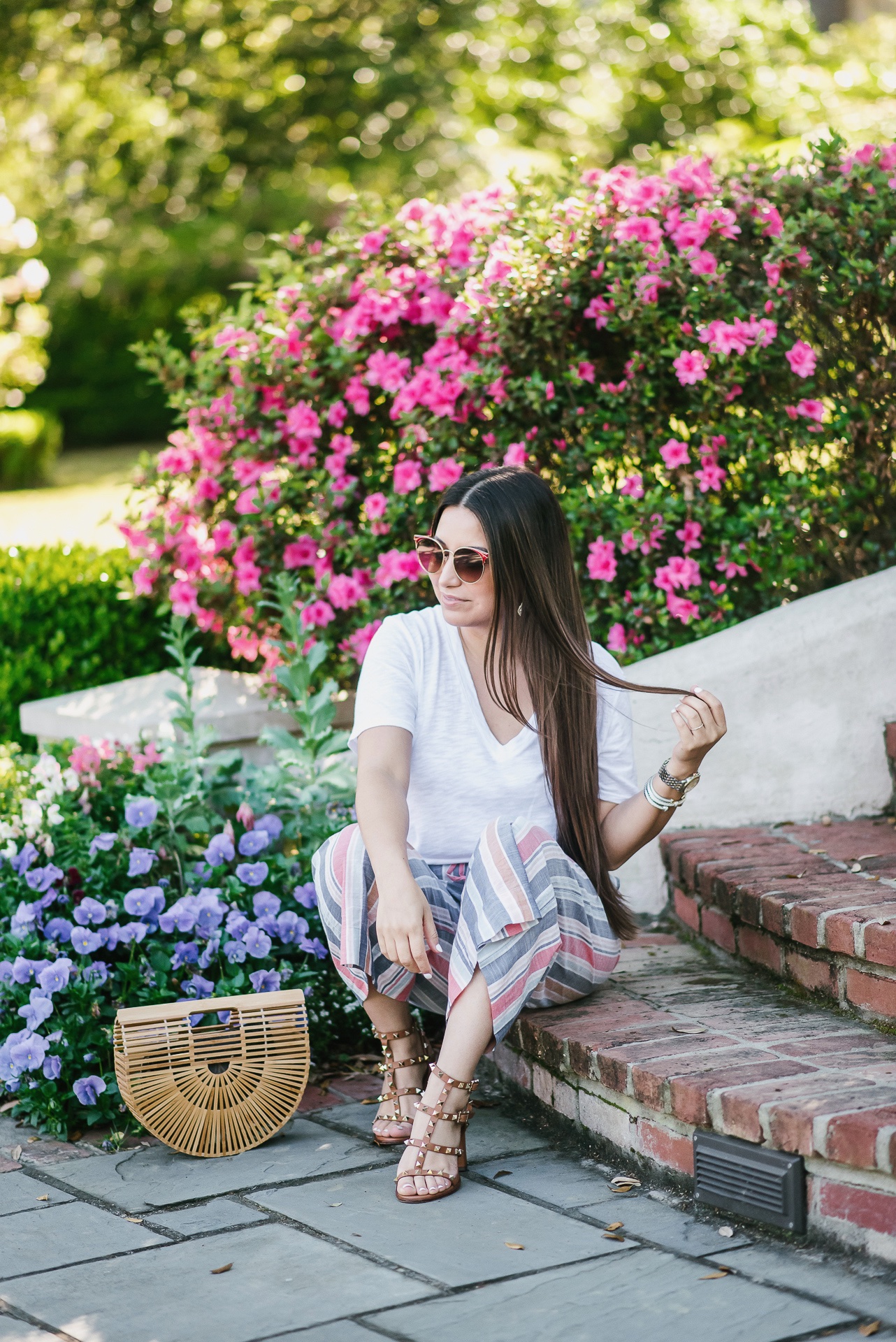 Striped pants and basic tee