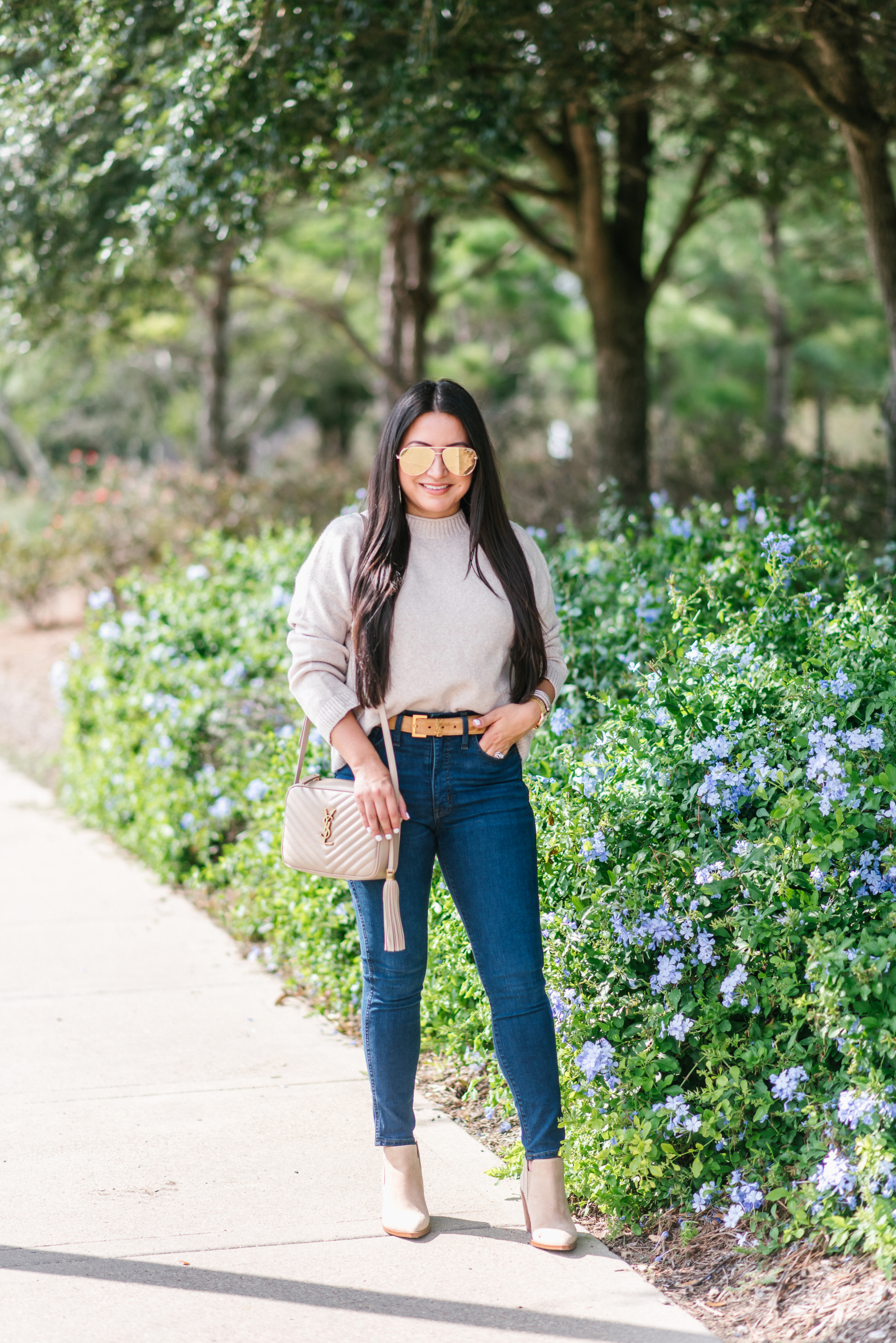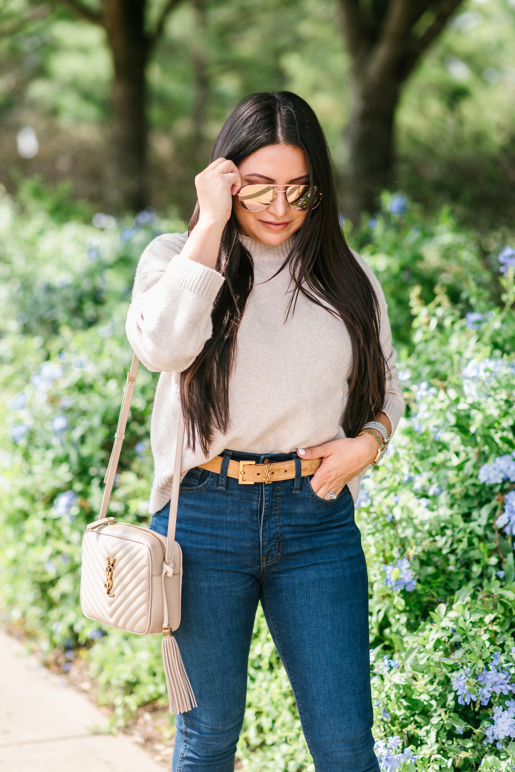 I love a classic dark wash denim for fall and these were perfect. The rise is high, which is my favorite and they also come in petite length(I am 5’1″). This sweater was another Nordstrom find. It’s a medium weight and will be perfect for the cooler months. And, of course…I’m in love with the color! I also just have to mention this crossbody bag as well. I get asked often about a good first luxury bag and I highly recommend this one. The size is great, it’s comfortable to wear and the price is perfect for a first luxury bag. This one has gotten a lot of use lately and it’s holding up great.