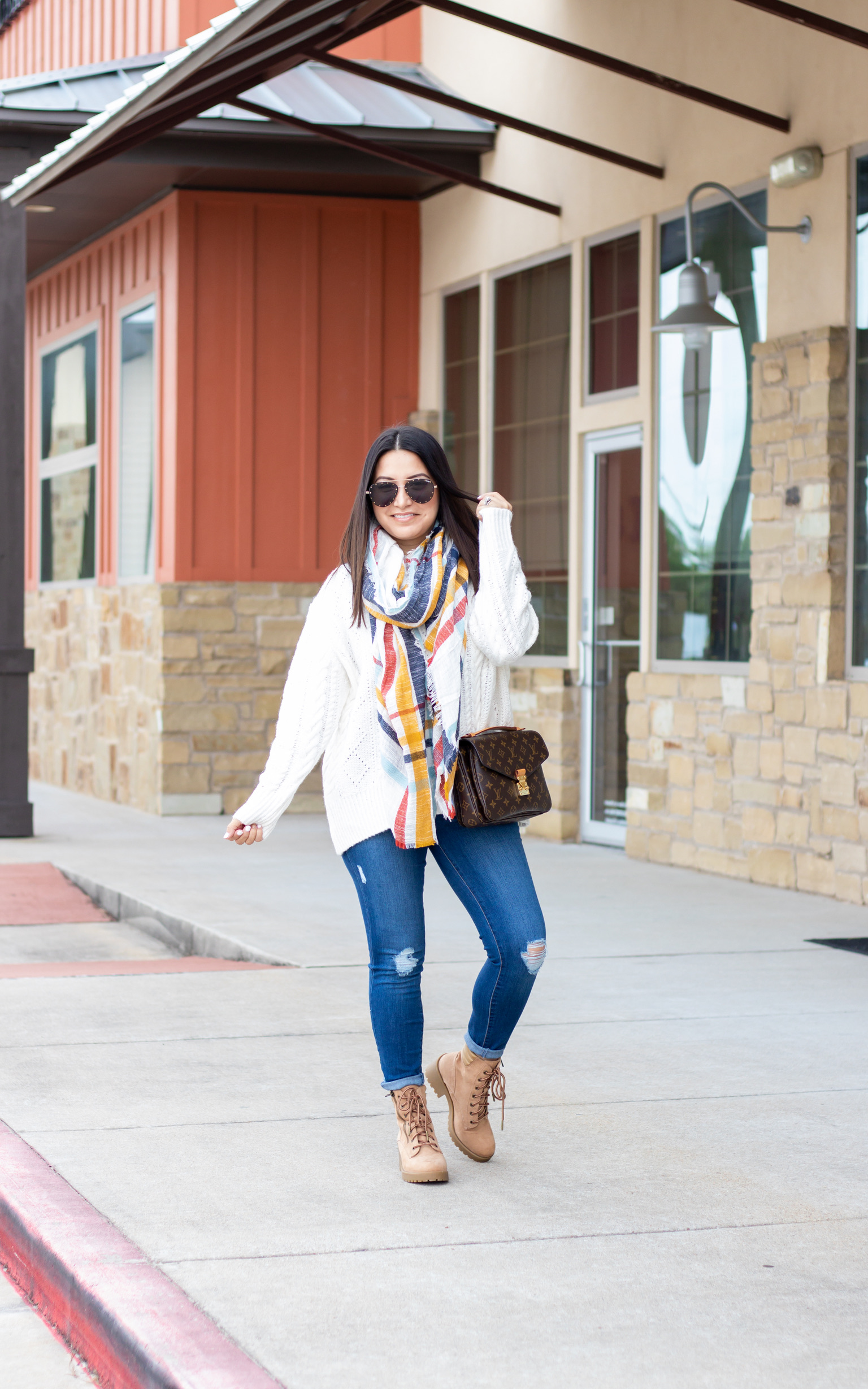 Who else is loving the hiker boot trend?! They are on major trend right now, but when it comes to trends I don’t like to break the bank. Luckily, you don’t have to. These boots are ON SALE for $23 y’all!! Yes, $23!! The best part it, they are actually really comfortable. I went up half a size and can’t stop wearing these. I also shared them here. These might be one of my all time favorite Walmart finds. The also have some good fall/winter finds. This scarf is so fun and colorful and this sweater is so warm and cozy. Check out all the best Walmart fashion finds here.
