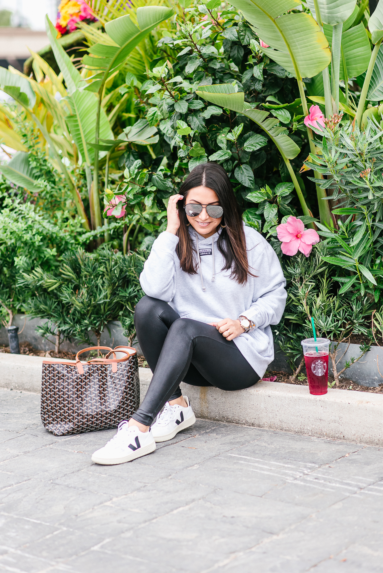 Sneakers | Similar Pullover |Leggings – XS |Earrings | Sunglasses | Watch | Bracelets | Handbag
