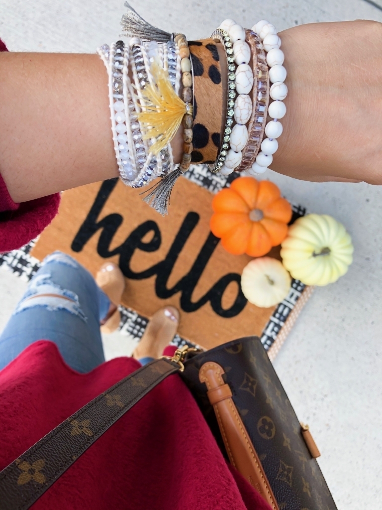 Fall is in full effect here, even in Texas. Can you believe it?!? Let’s not question it, let’s just enjoy it as long as we can. Which means I am pulling out all the sweaters, cardis and even some new Fall accessories. I’ve talked about Victoria Emerson in the past and you know how easy and effortless they make arm stacking. Well they just launched a new Fall Collection that you have to check out. Whether you are a fan of their wrap bracelets or their boho cuffs they have something new for you. The collection is full of warm tones and cozy colors perfect for fall.