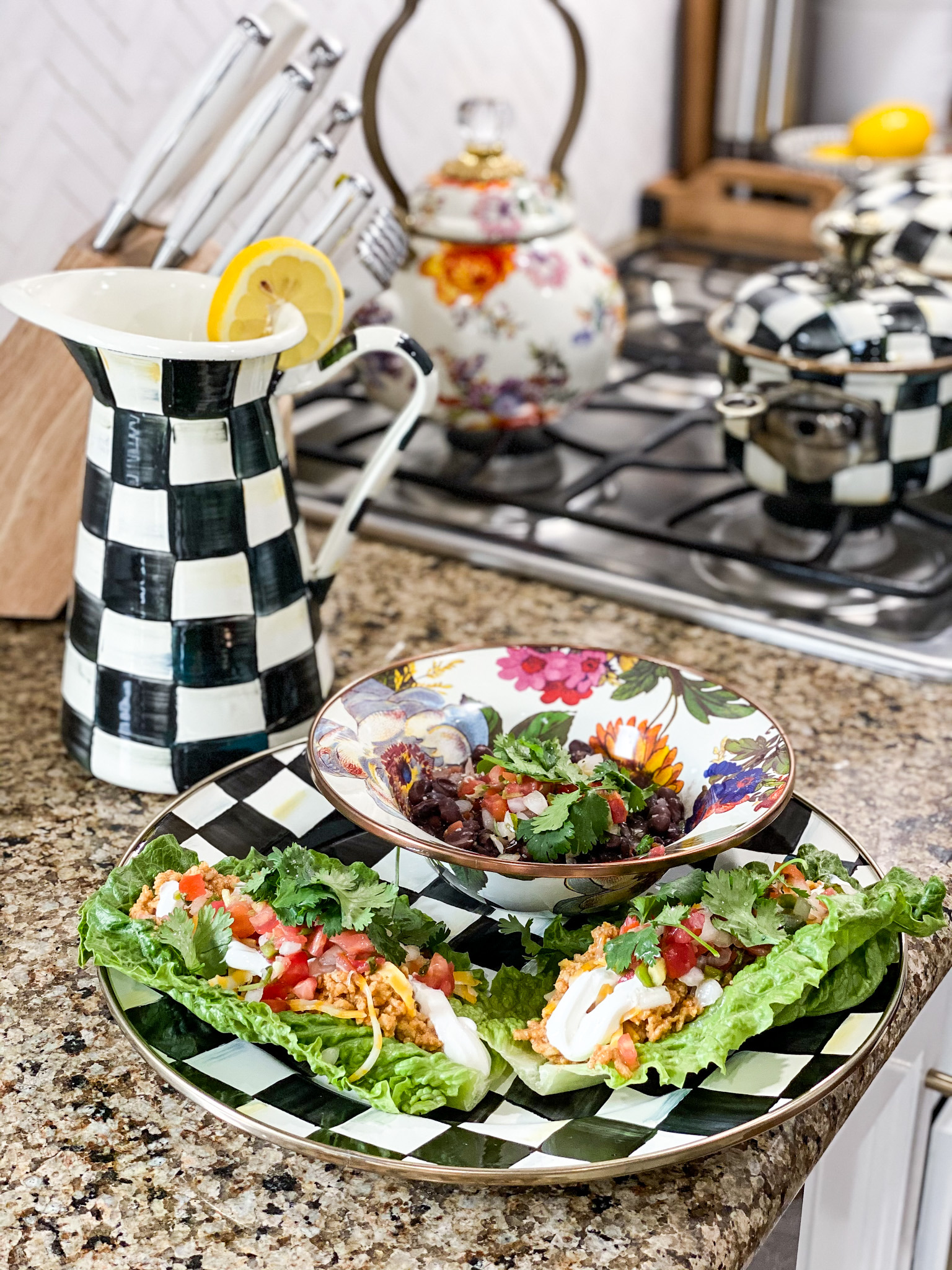 I am so excited about today’s post. I’ve received an overwhelming response to share more easy recipes but I also get to share some of my new MacKenzie-Childs pieces with you. I have fallen so in love with the MacKenzie-Childs brand. Not just the actual pieces, they are pretty incredible but the brand itself. A couple of months ago I was able to attend a blogger event sponsored by MacKenzie-Childs and was able to dive deep into the culture of the brand. I was able to see first hand one of MacKenzie-Childs artists painting and sharing the techniques that they use to create these one of a kind pieces. To say that MacKenzie-Childs is just home decor and plates, would be unjust. It’s a culture, it’s a lifestyle and it’s something that is not hard to fall in love with once you are introduced to the brand. I’ve already have several of you reach out to me once I started sharing MacKenzie-Childs to share your personal collection. I am excited to share some of my collection with you too.