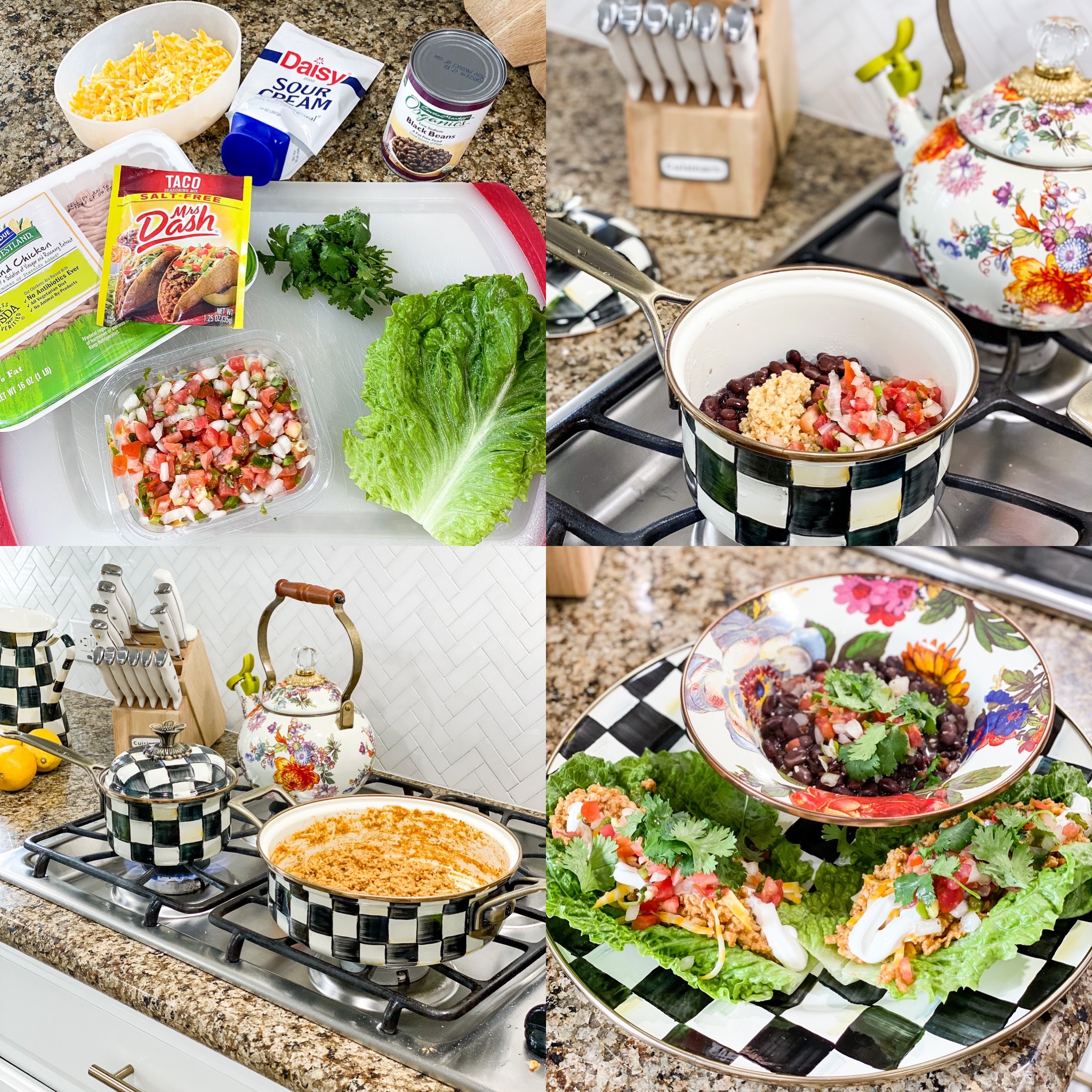 If you are trying to cut carbs or you just enjoy vegetables these lettuce tacos are a must try. The boys don’t east chicken, so they didn’t eat lunch with me today but this is a favorite meal of mine. I also love that I can make them as spicy as I want since the boys aren’t eating them. I like to serve with black beans but I always have to spruce up canned beans a little. This is so easy and a great way to make canned beans better.